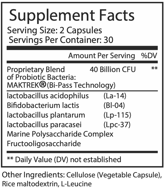 Powered by MAKTREK® Bi-Pass Technology to ensure targeted release and maximum probiotic viability.
