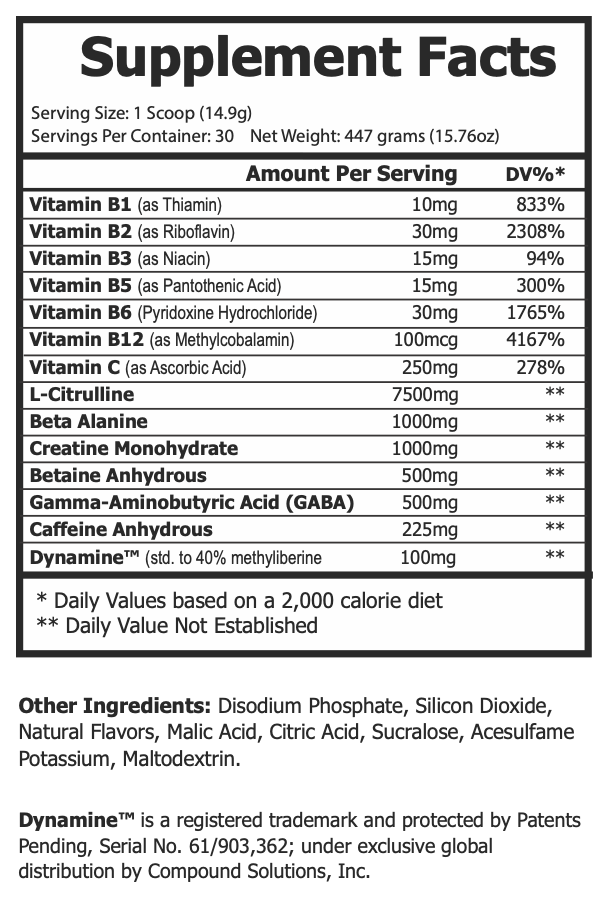 Includes B Vitamins, Creatine, L-Citrulline, Choline, and Caffeine